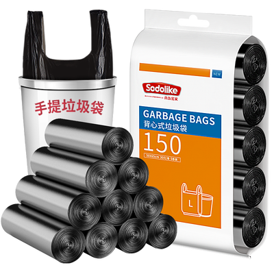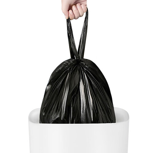 背心式垃圾袋,好用不脏手。采用复合吹膜工艺的垃圾袋,韧性更强,尖锐物品入袋也不用担心。严选优质材料制作,垃圾袋没有异味,使用安心。