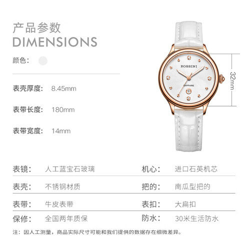 采用人工合成蓝宝石玻璃表镜设计,通透性高,带来更加清晰的读时体验。采用皮质表带设计,柔韧性好,带来更好的佩戴体验。