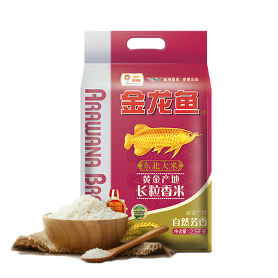 自然芳香|金龙鱼的这款大米来自东北“黄金水稻带”产地,存留自然芳香,米粒细长,颗粒均匀,色泽洁白清亮,米饭粒粒软韧不粘牙,简单烹饪也能出美味。