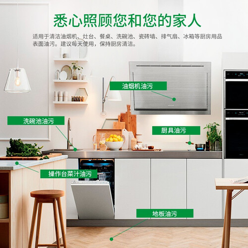 这是主妇们厨房清洁的好帮手,富含强力的清洁因子,能够快速清除各种厨房用品的表面油污,带来洁净以及清爽。