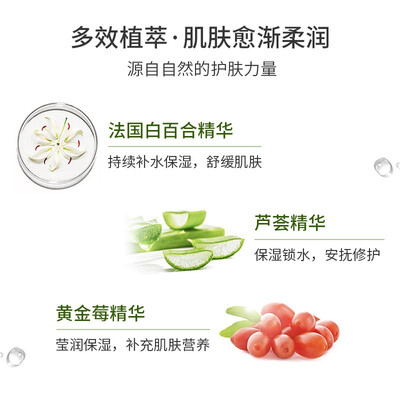 添加黄金莓精华,帮助补充肌肤所缺的各种营养。爽肤水的质地细腻清爽,由内而外层层渗入肌底,有效解决皮肤干燥烦恼。