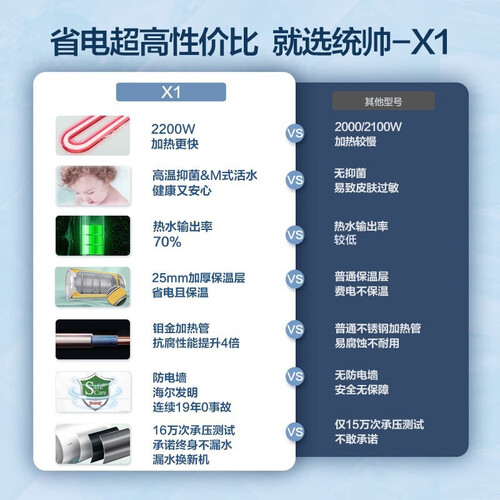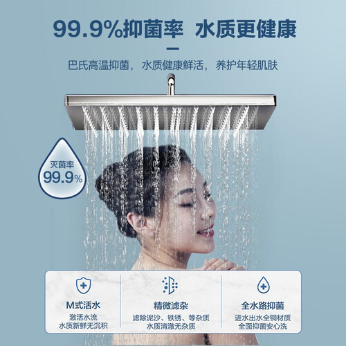 M式新鲜注水设计, 轻松增加胆内水的活性,轻松减少水垢的沉积。采用防燃材质打造的致密保温层,轻松锁住温度,更加省电。