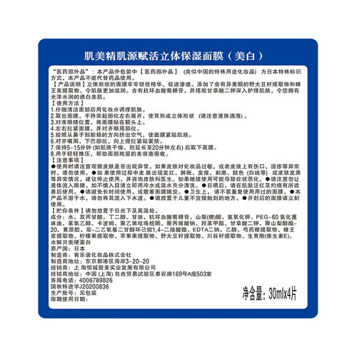 肌美精3D美白提亮面膜