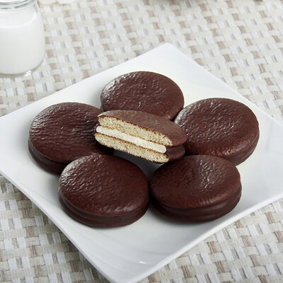 采用精选食材,代可可脂巧克力和优质的小麦粉等,使巧克力派的口感更加香甜美味。含有涂层夹心,口感松脆,甜而不腻。