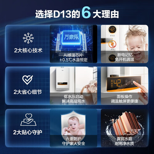 搭载AI智能感温芯片设计,及时调配水量与燃气的比例,恒温出水有保证。放倒风烟道设计,防止沐浴过程中冷风倒灌,享安心。