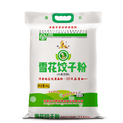 鑫乐雪花饺子粉甄选永良四号红皮硬麦,采用传统加工技术,面粉干净无杂质,口感细腻柔软,面饼筋道润滑,成型饱满,香脆酥口。