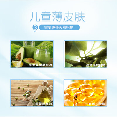 蕴含德国小麦蛋白成分,深层滋润肌肤,锁水保湿,温和无刺激。采用独有分阶段健脂配方,专为3岁以上儿童研制,强健薄皮肤。