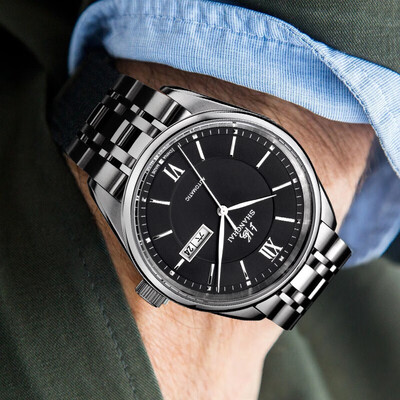 镂空背透设计,视觉通透,机芯运作之间,彰显力量美感。亚钻级人工蓝宝石,耐磨防刮花,佩戴多年通透如新。