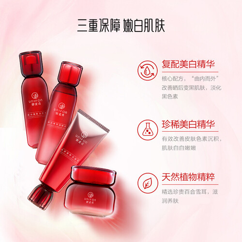 白嫩美肌 | 水润滋养更健康,让肌肤白皙而细腻。多种天然植物精华,持久滋润释放澎湃水润,改善色素沉积,再现娇嫩容颜。