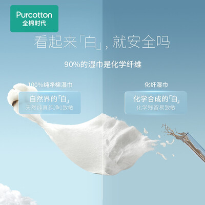 这款宝宝湿巾选用天然绿色的棉花纤维材质,经过水刺成布,柔韧不易掉絮,不用妈妈费心。
