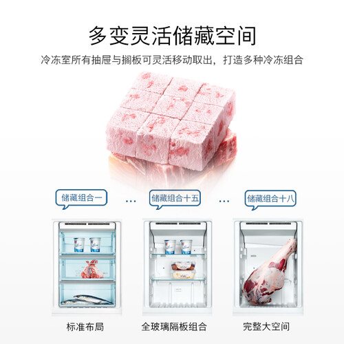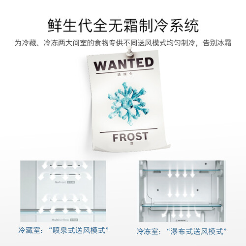 风冷无霜制冷系统,免去除霜烦恼更省力,食材保留原味更健康,大空间设计,让各种食材都能轻松储存,满足全家人的需求。