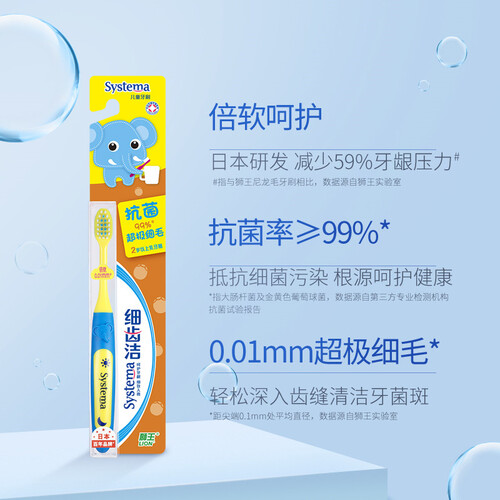 细软毛深入清洁齿缝,杜绝食物残渣与有害菌停留,中部撞色刷毛很醒目,易吸引小朋友注意力,动物造型软胶刷柄,实用又有趣。