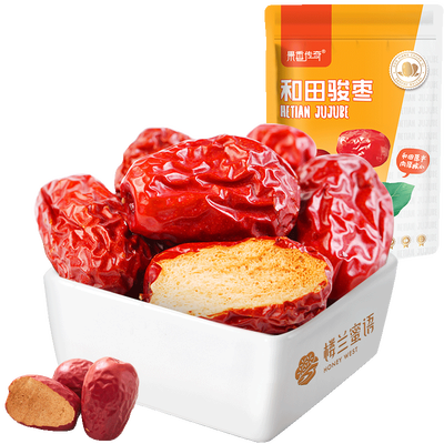 精挑细选优质新鲜和田大枣,皮薄肉厚,具有浓郁自然枣香。经过6次清洗,采用机器烘干,每一步都经过严格把关,质量保证。