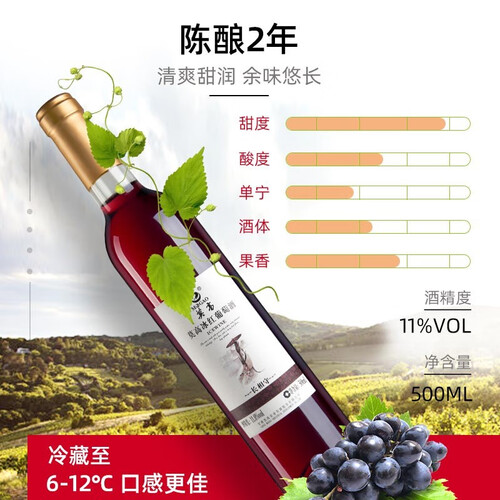 选取品质出色美乐葡萄带皮酿制,拥有单宁丰润柔滑的特性,经过反复的加工和发酵以后,能形成酸甜平衡的味道。