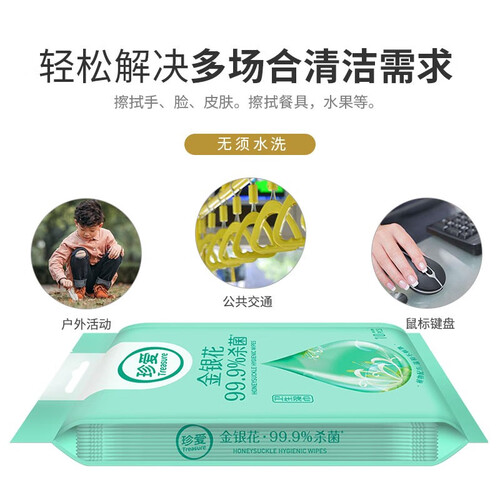 蕴含金银花提取液,有效除菌消毒,呵护家人间肌肤健康。单片独立包装,洁净卫生无污染,方便随身携带。