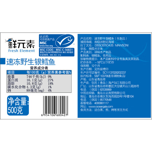 海天下 肉质鲜嫩 冷冻银鳕鱼