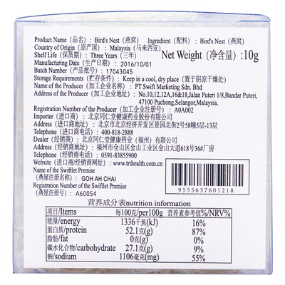 同仁堂 进口白燕盏