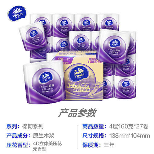 这款棉韧卷纸采用4D立体美压花工艺,在保证美观时尚的同时,为用户提供亲肤的棉柔体验,使用更加舒适。