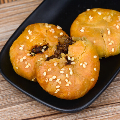 金黄的蟹壳状饼皮,咸香美味,一口吃下去油而不腻。严选梅干菜扣肉食材,老面发酵,做出地道风味,口感细腻。