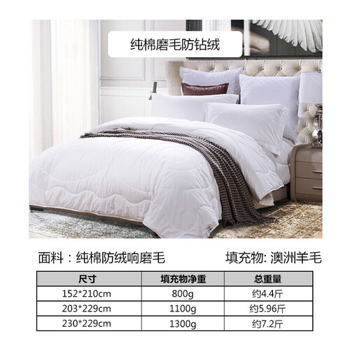 外层由纯棉磨毛面料裁剪而成,接触肌肤舒适亲肤。内里填充澳洲羊毛,羊毛纤细柔软,持久蓬松不板结,可以带来很好的保暖效果。