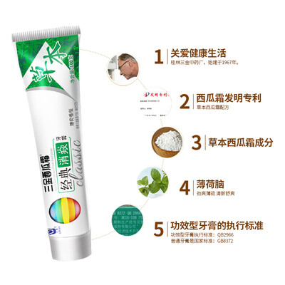 采用西瓜霜配方,能减轻因吃香喝辣带来的肿痛、溃疡等口腔问题;内含薄荷提取物,早上用它刷牙,唤醒您一天的活力。