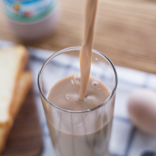 奶味香浓,口感甜而不腻。巧克力浓郁丝滑,喝起来非常甘甜上口。冷藏后风味更佳,搭配蛋糕或面包,营养美味。
