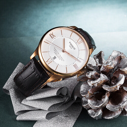 天梭 银盘皮带瑞表