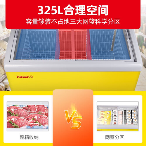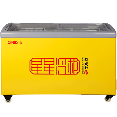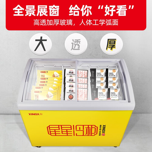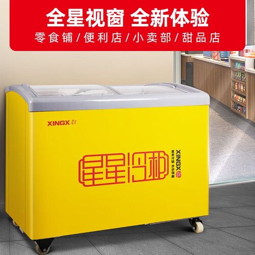 明黄色机身设计,吸引客户眼球,带给人眼前一亮的感觉。高透弧面玻璃门设计,展示效果好,选购更便捷。