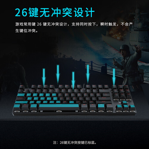 金属铝合金上盖,采用金属氧化喷砂工艺。键盘底部配置防滑脚垫和支撑架设计,轻松调节高度,让你享受更舒适的手感。