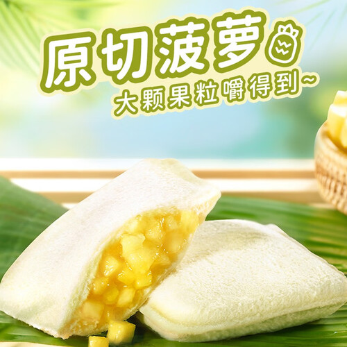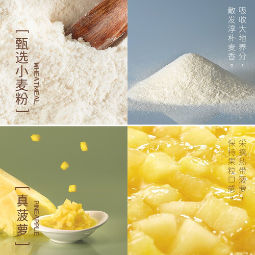 加入新鲜菠萝与新鲜黄油,采用短保质期制作工艺,使得面包更加新鲜,咬上一口酸甜的菠萝一下就溢出来了。