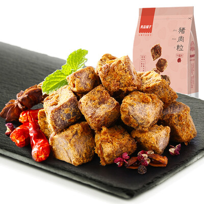 精选新鲜猪肉腌制加工而成,色泽鲜红有光泽,一口一粒,回味悠长。