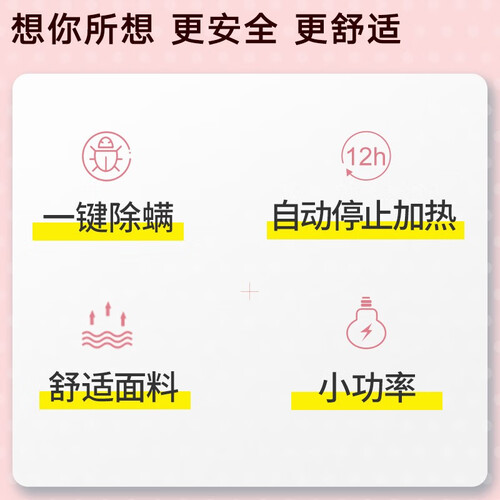 简易的电源开关按键,单手可操作轻松开合,独立的除螨功能使用简单,保护身体健康。精细的包边缝合,面料结实不易破裂。