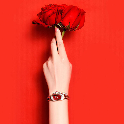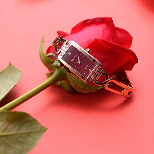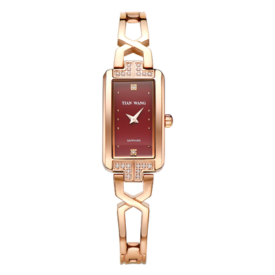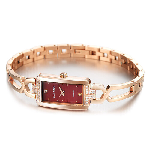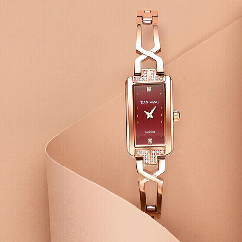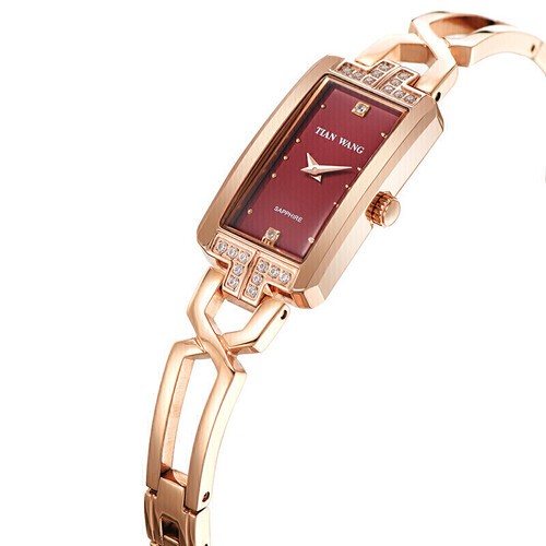 小巧方形造型,在周围用上锆石装点,纤细的表带佩戴在手腕上,展示腕间的风采,搭配上酒红色表盘,增添知性魅力。