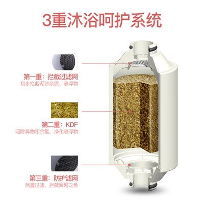 去除重金属的淋浴过滤器,使用过程中吸附漂白粉,采用KDF介质,截污防护滤网构成的三重呵护,为家人带来清爽的沐浴体验。