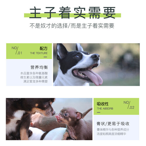 添加麦芽晒、乳糖酶和多种益生菌成分,帮助改善宠物的肠胃,针对乳糖不耐症,增加适口性,易于吸收。