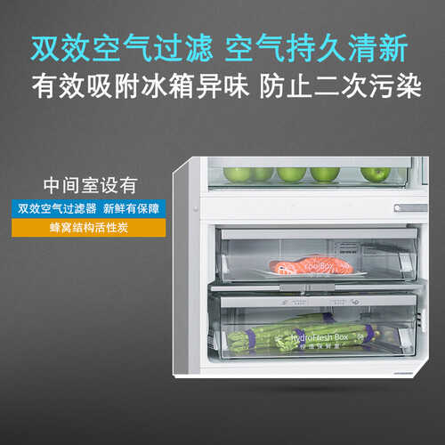 运用C型风冷技术,借助上扬式风道设计,能立体包裹食物,避免直吹,保鲜更均匀;包含双重空气过滤,可防止异味滋生。