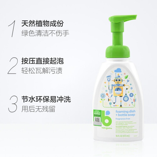 植物清洁配方,蕴含植物精华,能够有效去除污渍,同时易于冲洗,无残留,可用来清洁奶瓶、奶嘴等儿童用品。