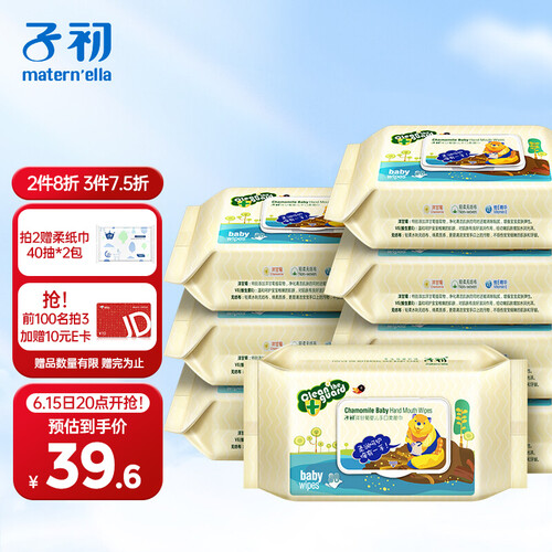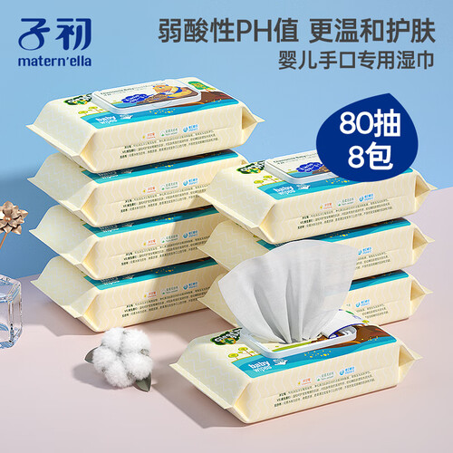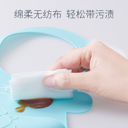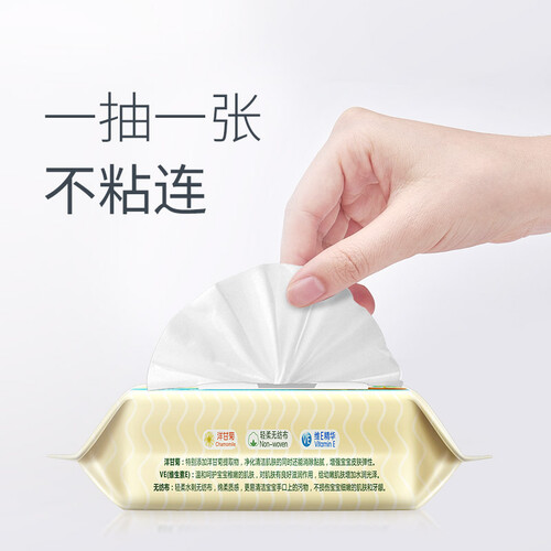 水刺无纺布材质,柔软细化,反复擦拭肌肤不泛红。添加了洋甘菊精华和甘油,能够帮助滋润宝宝肌肤,温和舒缓。