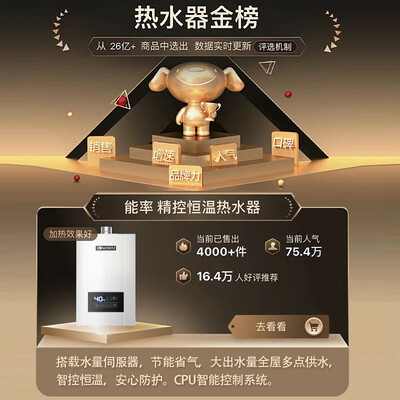 搭载恒温智控系统,可实时调控水量、燃气及空气比例,让水温一直保持舒适。CPU智能控制中心,轻松应对复杂环境,实现出水温度稳定。