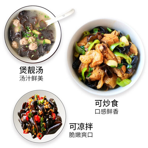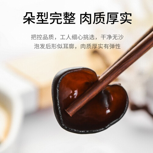 形状大朵的黑木耳,已在加工中将根部清除干净,便于快速烹饪,省时省力。通过烘干进行保存,可充分锁住营养与鲜味。