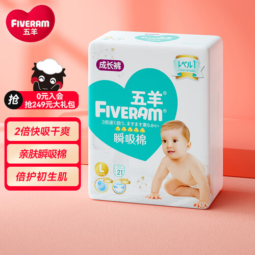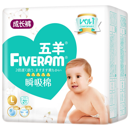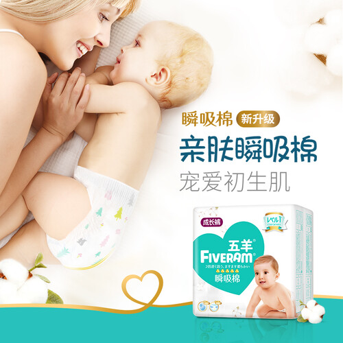 五羊亲肤瞬吸棉柔面层拉拉裤