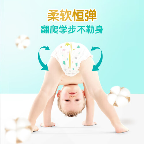 采用舒适的棉料,给宝宝的屁屁营造一个温柔窝。且瞬吸芯具有2倍速吸,弹柔环绕腰围,柔软贴心无勒痕。