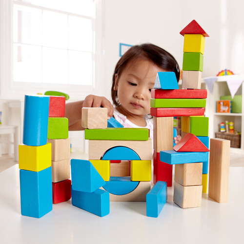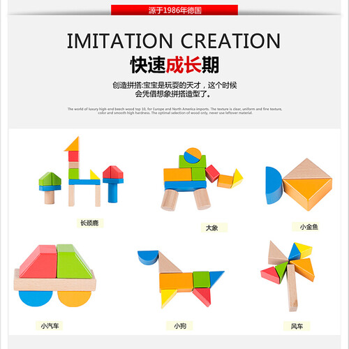 每一粒积木经过层层筛选,精细打磨,光滑倒角无毛刺;教宝宝认知积木的颜色;常见几何图形认知,提前为学前基础教学做准备。