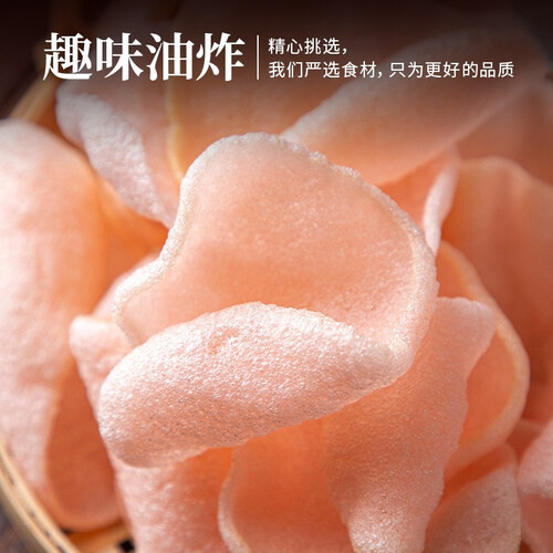 选用优质原材料,纯手工晾晒,口感香脆醇正,油炸后虾味更浓郁,体积瞬间放大数倍,一次性让您吃的更过瘾,饱腹感十足。