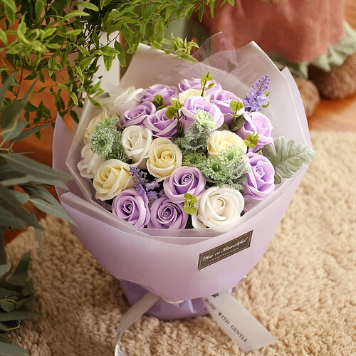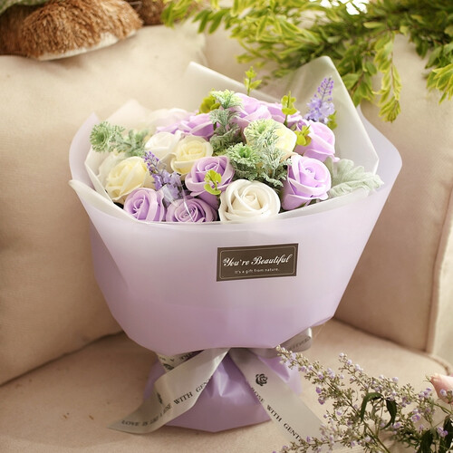 创意卷边玫瑰,花瓣逼真、色泽自然,且富有一定柔软度,可长久保存。简约浪漫的造型,带有缎带蝴蝶结点缀,搭配更加用心。