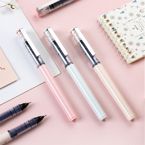 直液式的出墨结构,可以清楚看到墨水的容量,笔尖出墨均匀书写更加流畅;字迹清晰页面干净整洁,笔帽中带有保护套保护笔头。