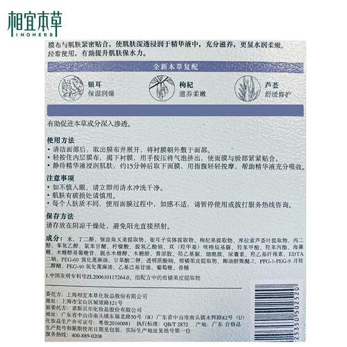 相宜本草 温和补水 面膜
