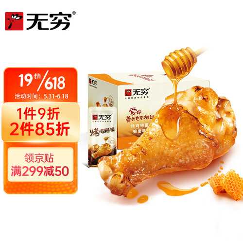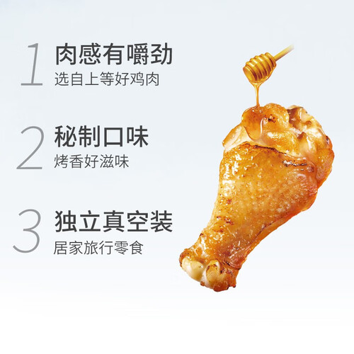 无穷蜜烤小鸡腿,甜而不腻好滋味。经过高温烘烤,排出多余油,好吃不长胖。独立小包装,吃取方便。