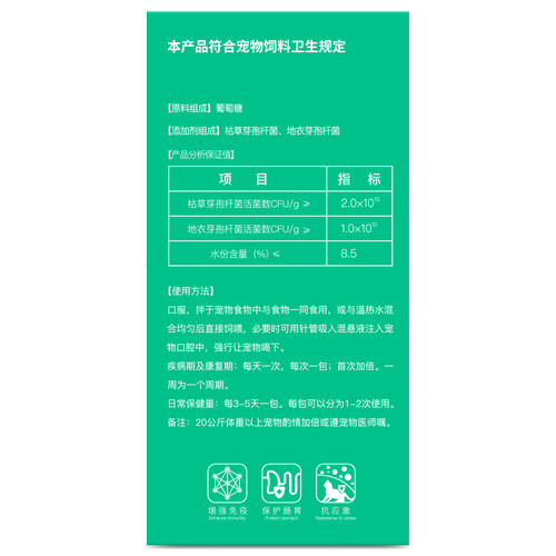 第5代优选菌种,有益爱宠肠胃健康,食用后可有效缓解消化不良、食欲不振等问题,粉末细腻适口性好,喂食更方便。