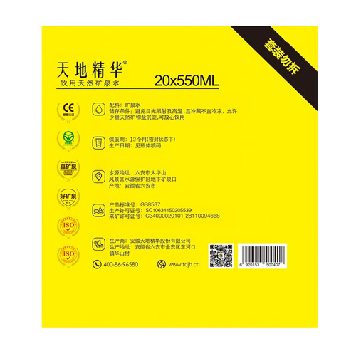 适合婴幼儿|若是携带宝宝出行,服务区或旅馆的水质难以保证,不妨带上一箱适合婴幼儿饮用的矿泉水。天地精华这款低钠淡矿泉,符合国家婴幼儿饮用水标准,让宝宝喝得健康。